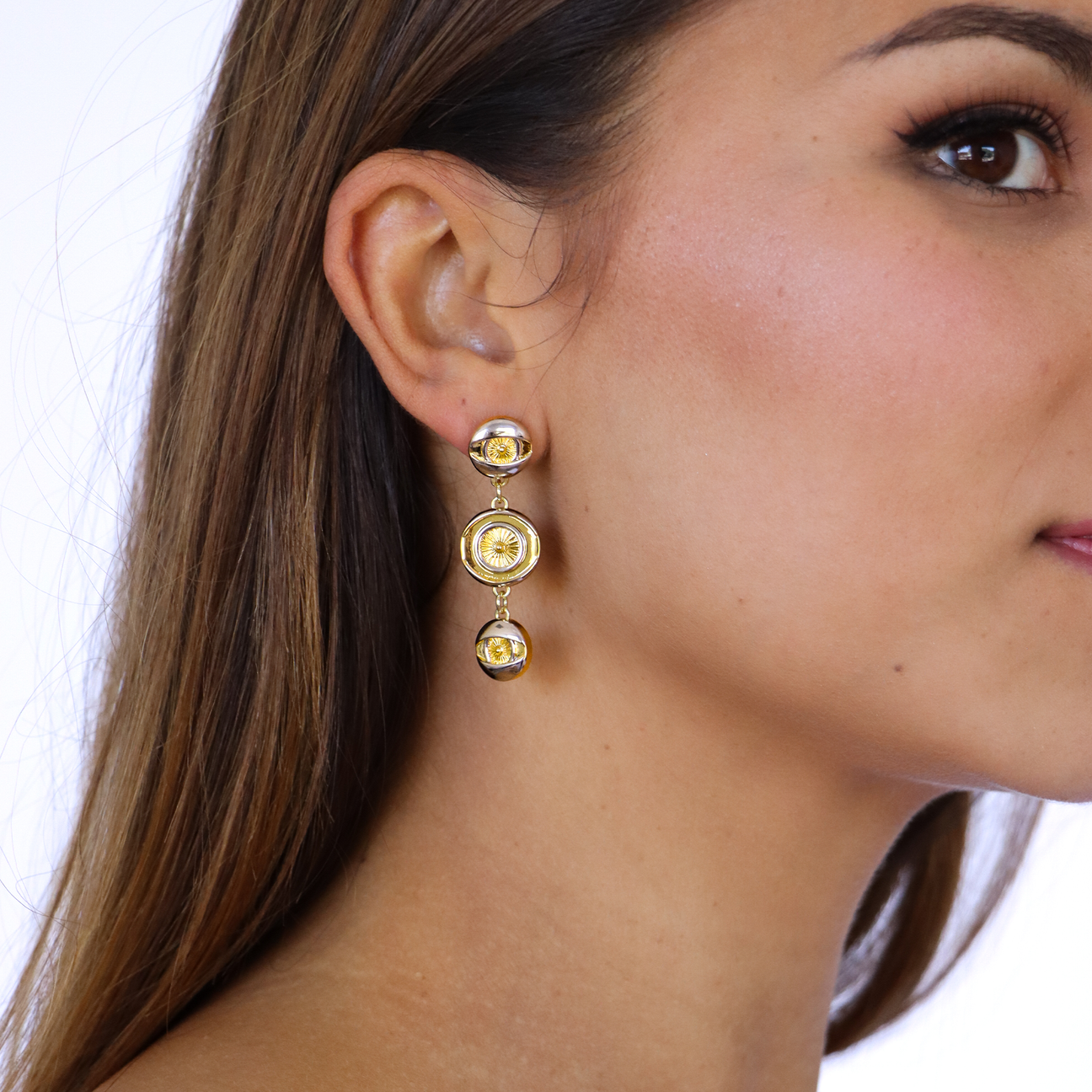 This earring is created by 3 eye charms linked together to create a unique dangle earring.