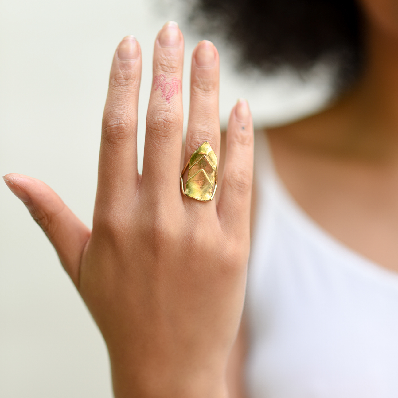 This ring is inspired by scale armor was worn by warriors of many different cultures as well as their horses. Horses covered with scale armor are mentioned in the ancient Chinese book of poetry Shi Jing which is several thousand years old. They are also depicted by the female Valkyries who chose who would pass onto the afterlife in the battles of Norse mythology.