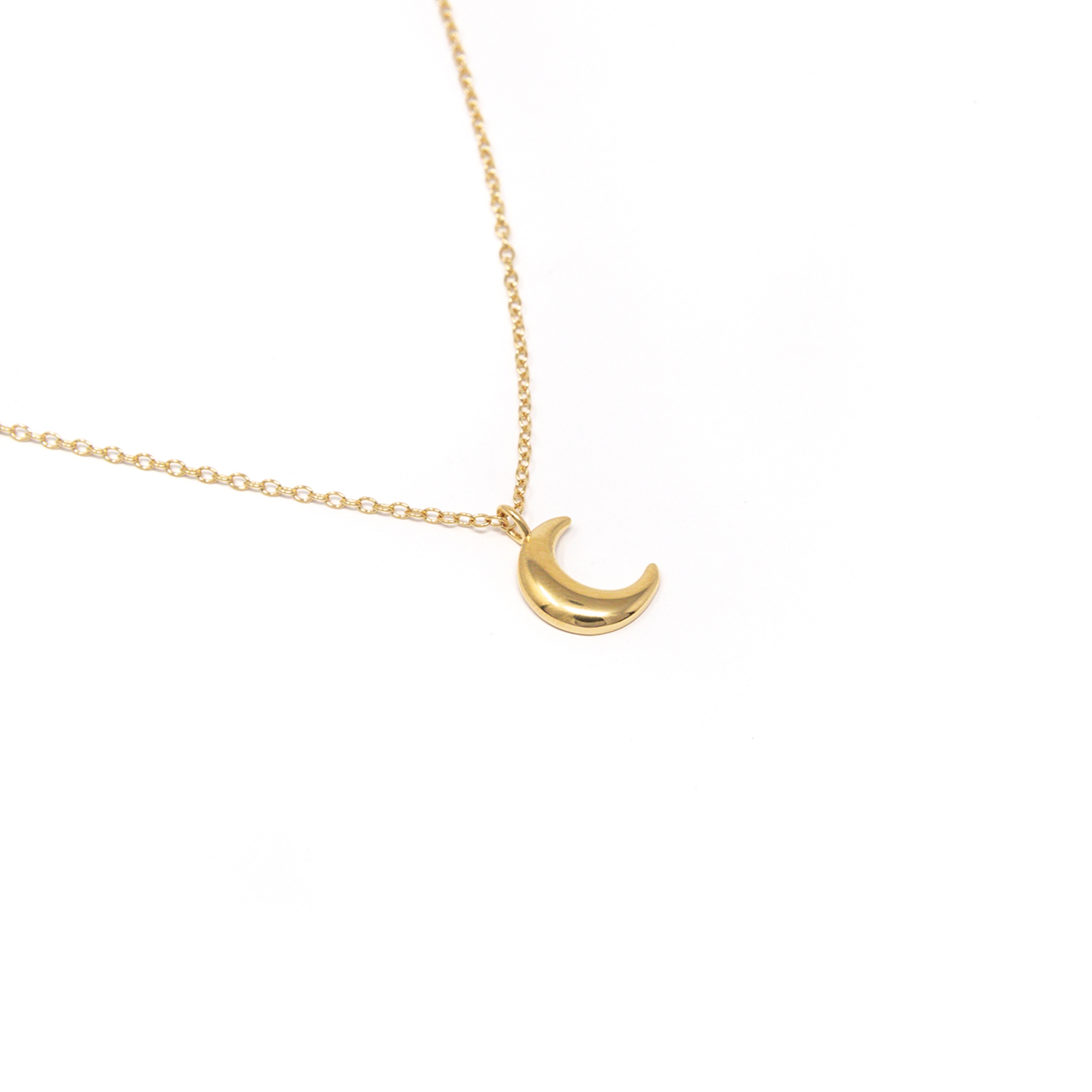 The cutest little crescent moon layering necklace on a dainty 14k gold chain. This necklace has an extension and can fit from 16-18 inches.