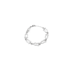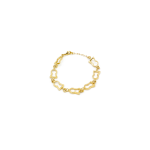 This bracelet is fully made of seven interlocking charms with a 2 inch extension. It measures at 8 inches. The Treasure charm bracelet features open keyholes that were cast from vintage doorways sourced in France.